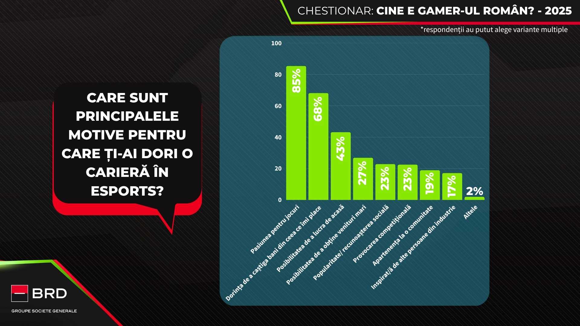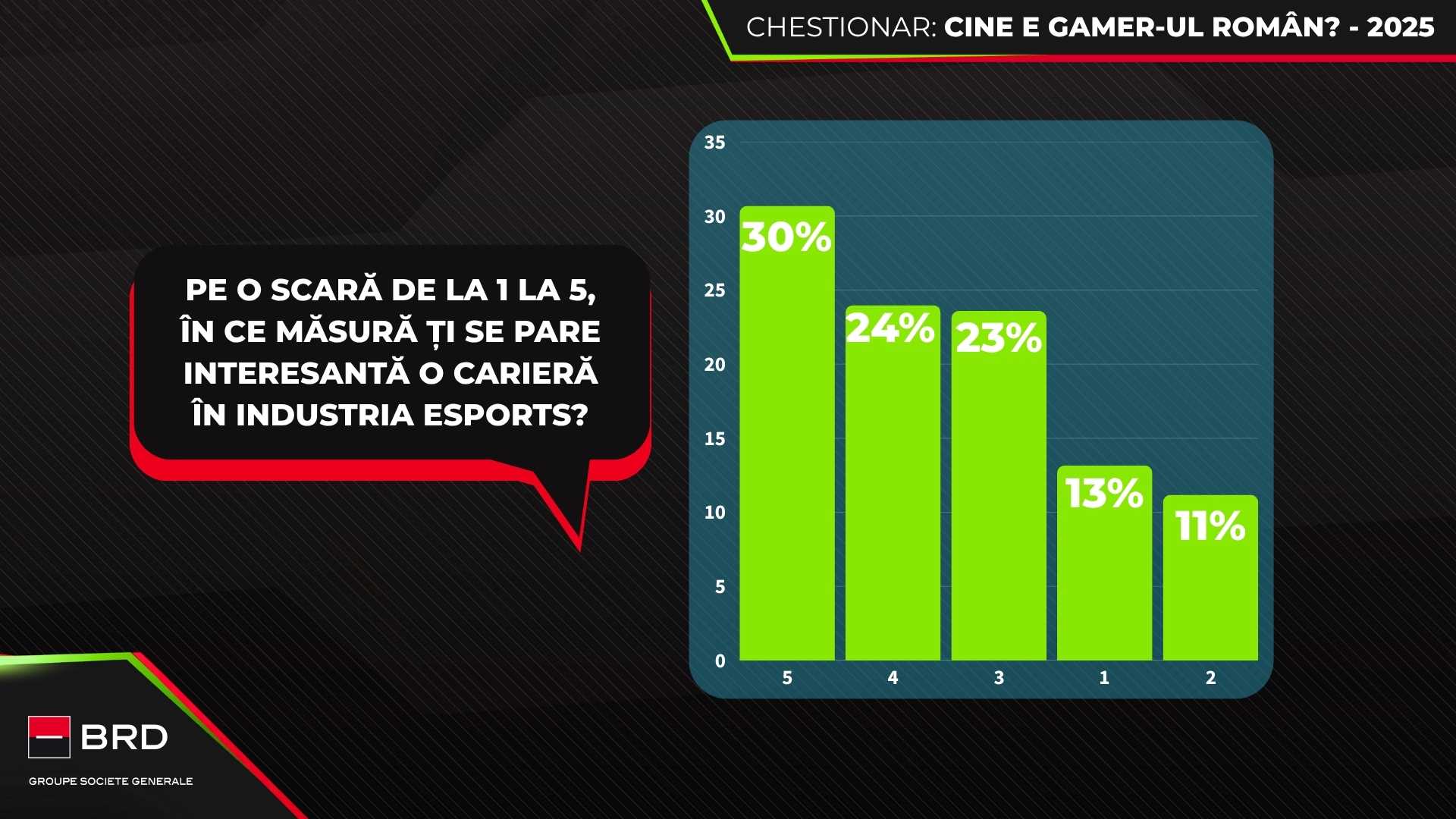 Unul dintre cele mai relevante aspecte ale studiului este interesul ridicat pentru o carieră în esports, considerată „foarte interesantă” de 31% dintre respondenți. Motivațiile principale sunt pasiunea pentru jocuri (85%) și dorința de a câștiga bani din ceea ce le place (68%).