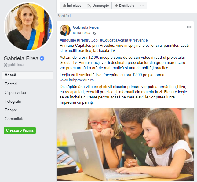 Aceasta este calea prin care primăria Capitalei vine în sprijinul elevilor şi părinţilor – lecţii şi exerciţii practice. Primele lecţii sunt destinate preşcolarilor din grupa mare, care vor putea urmări o oră de matematică şi una de abilităţi practice. Lecţia va fi susţinută live, fapt anunțat pe pagina de Facebook a primarului general, Gabriela Firea.