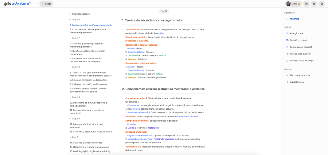 • mindmap-uri inteligente care îți arată legăturile dintre concepte.