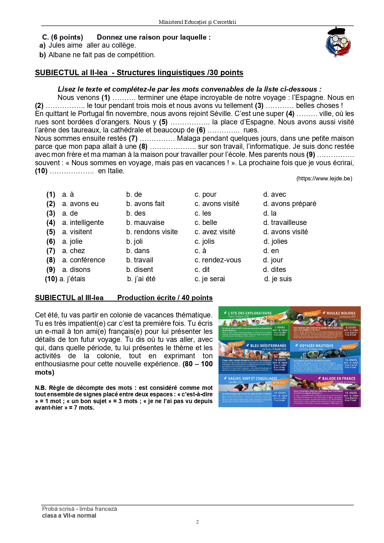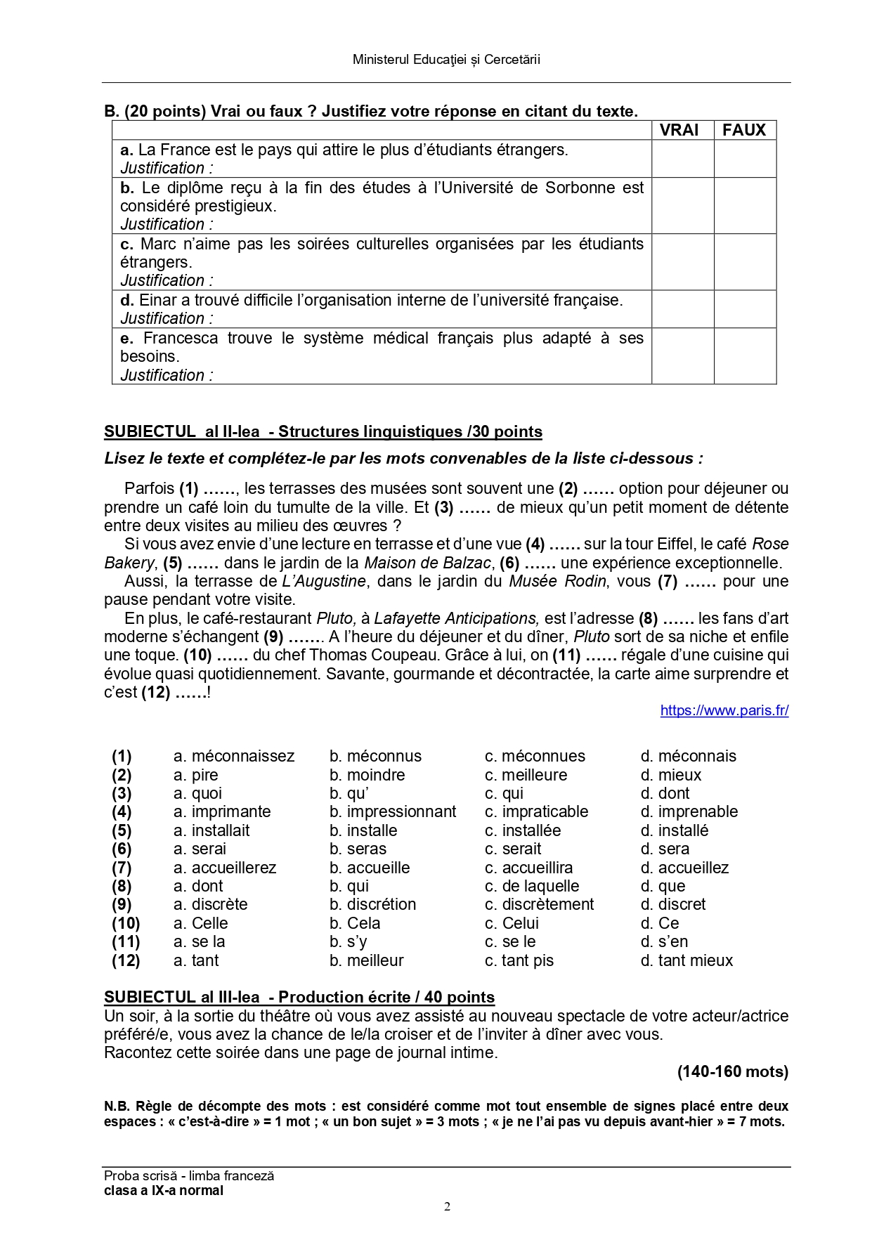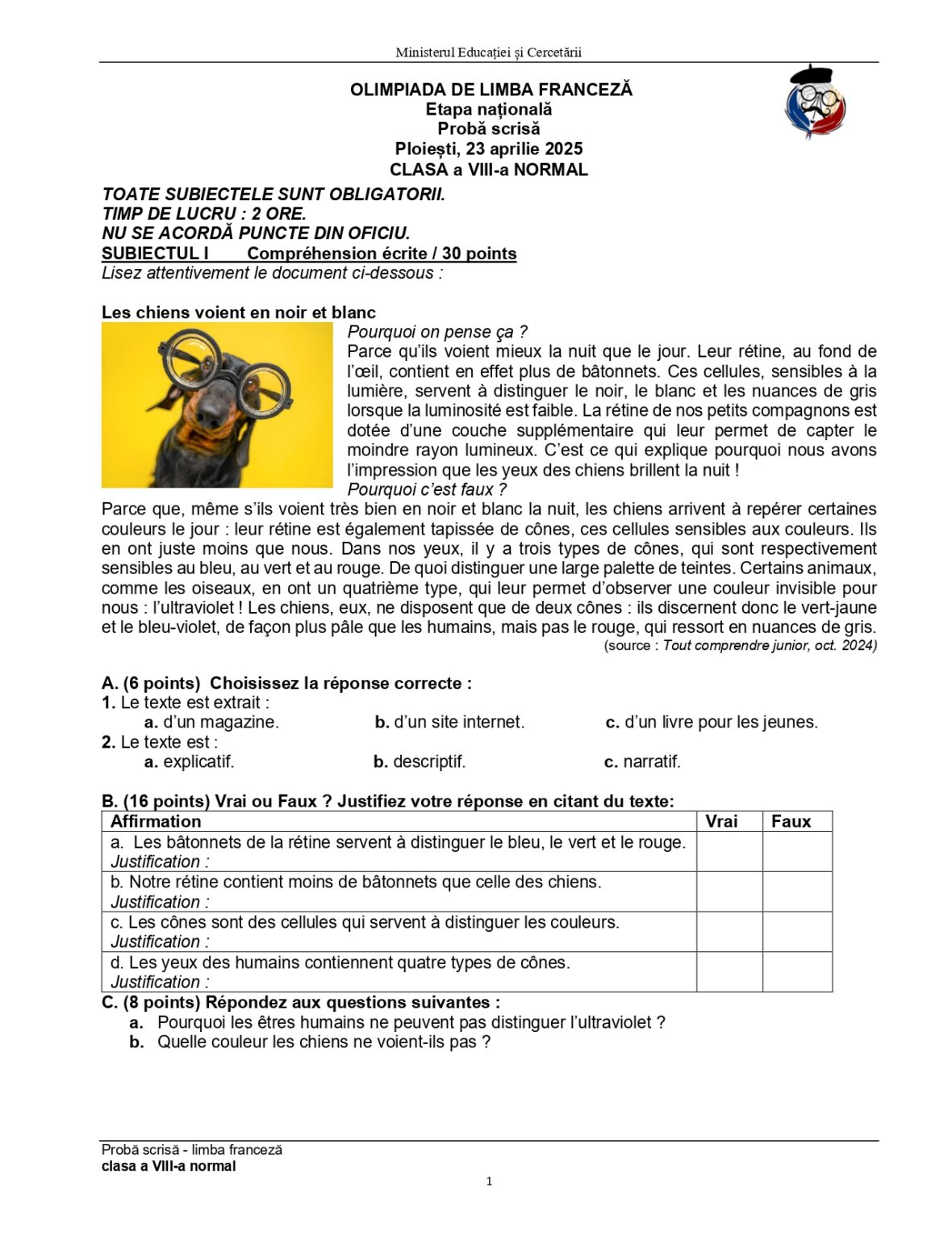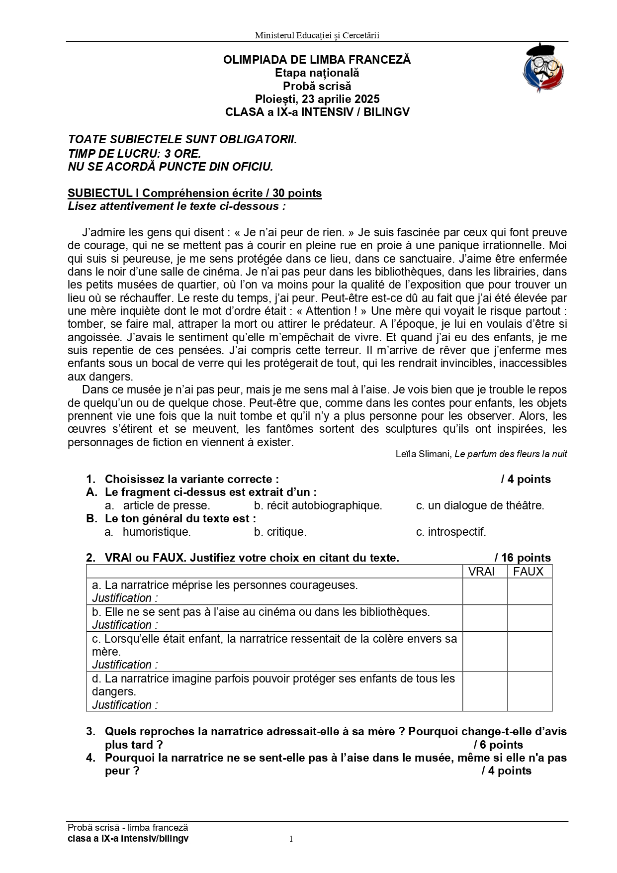 Olimpiada de Limba franceză 2025, etapa națională Ploiești. Subiectele și baremele de corectare