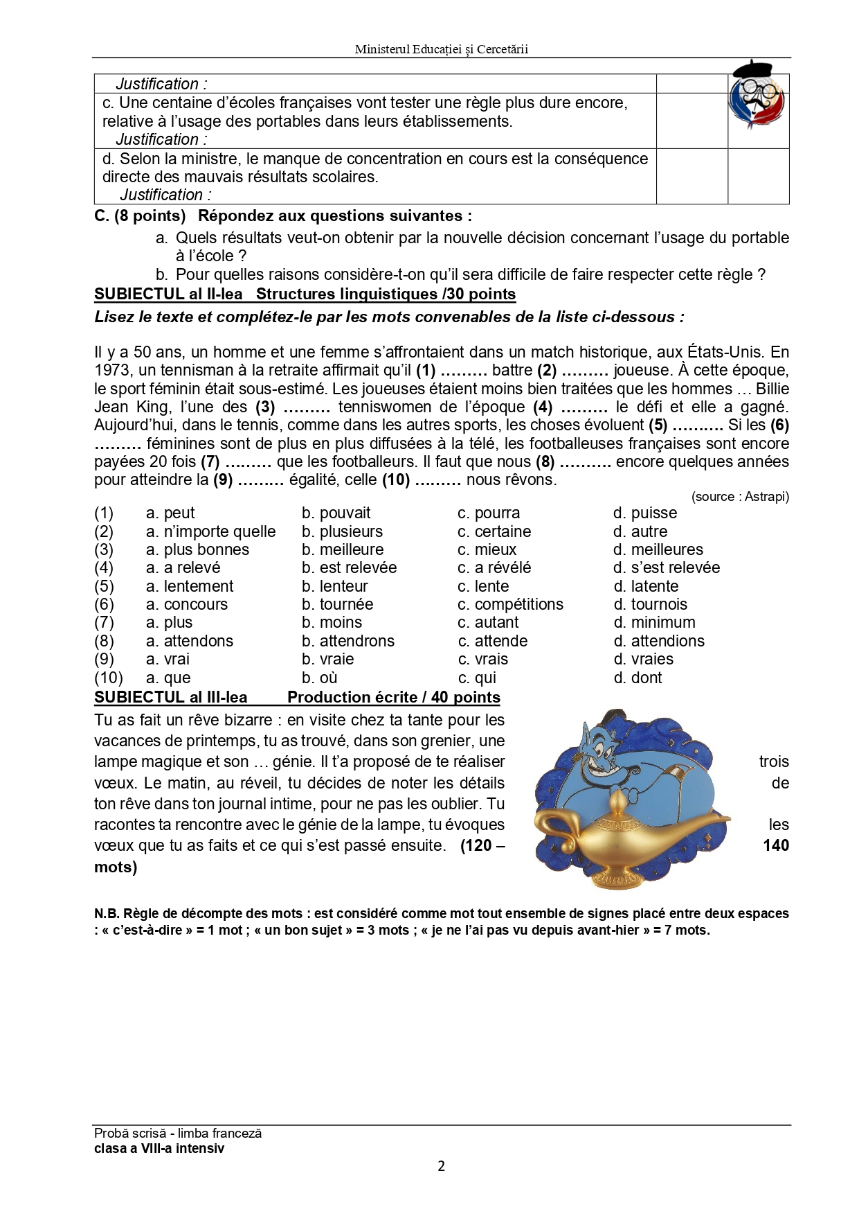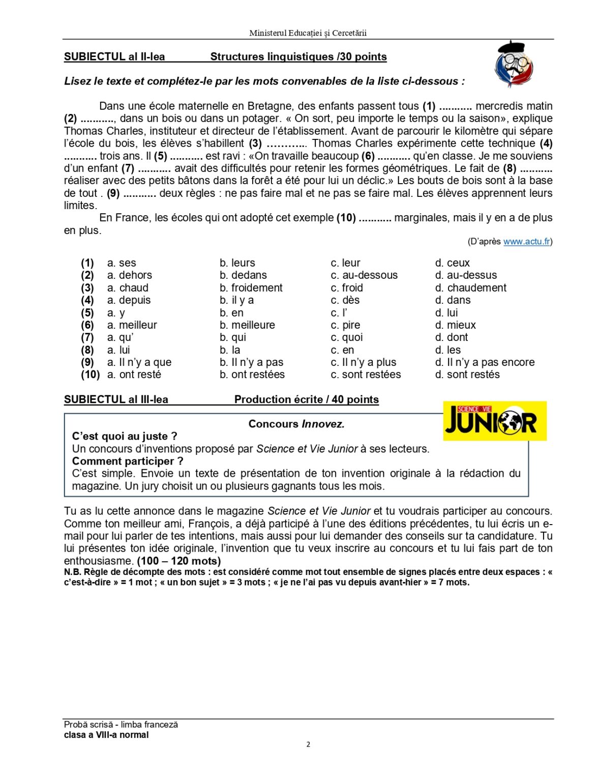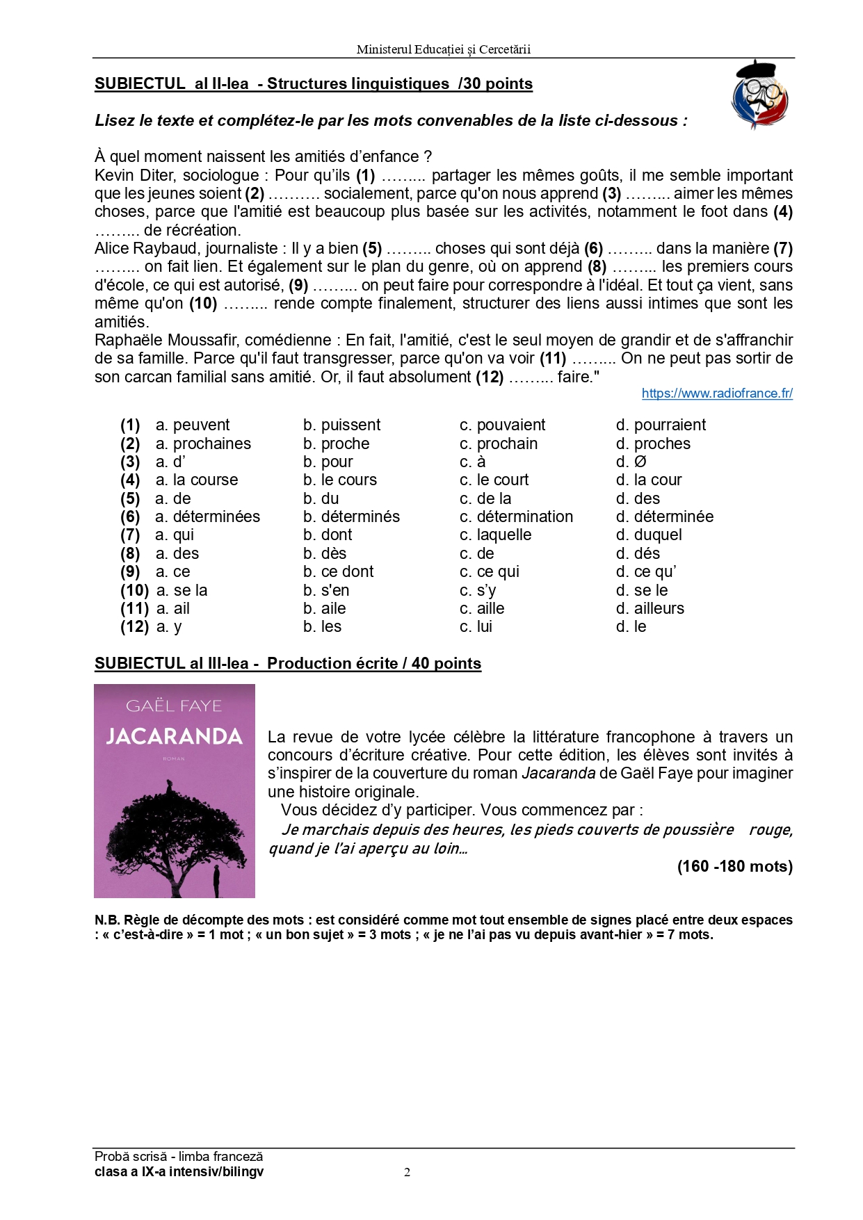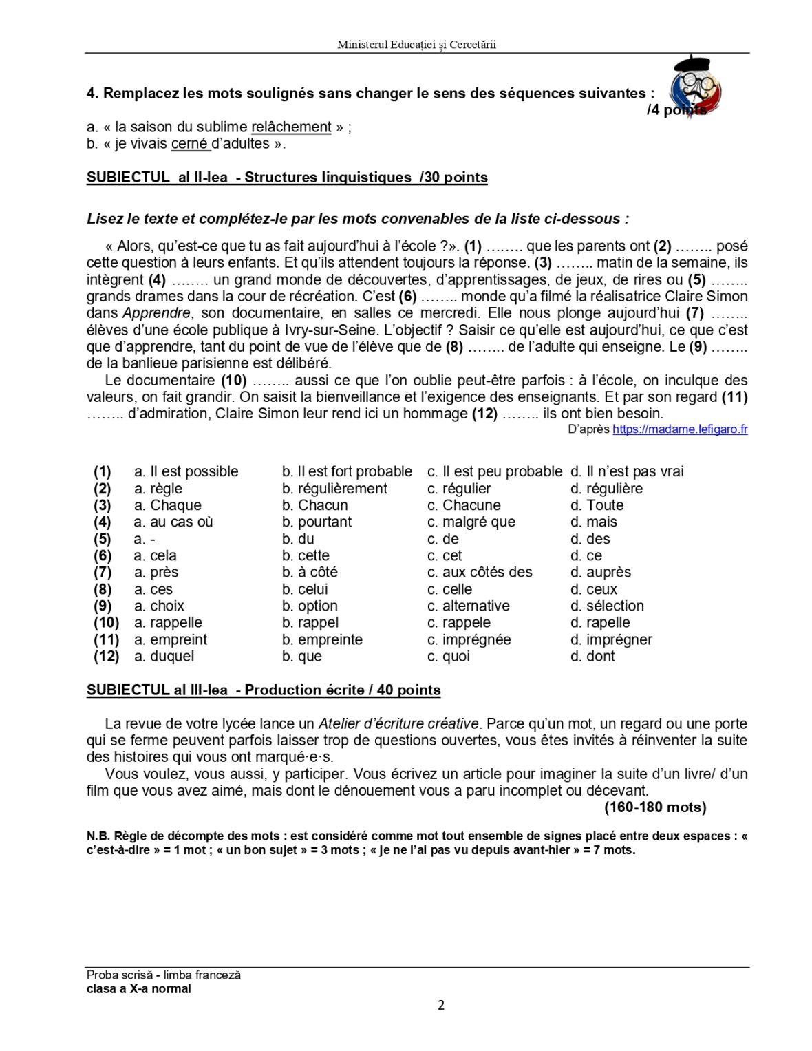 Olimpiada de Limba franceză 2025, etapa națională Ploiești. Subiectele și baremele de corectare
