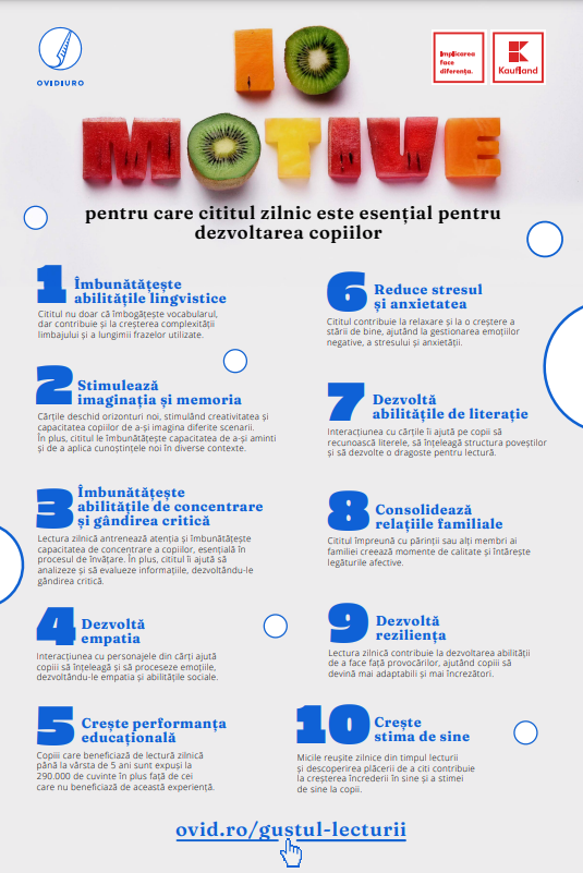Inițiativa „Prinde gustul lecturii” este realizată cu sprijinul Kaufland România, partenerul OvidiuRO în efortul de a oferi educație și resurse culturale copiilor din comunități defavorizate.