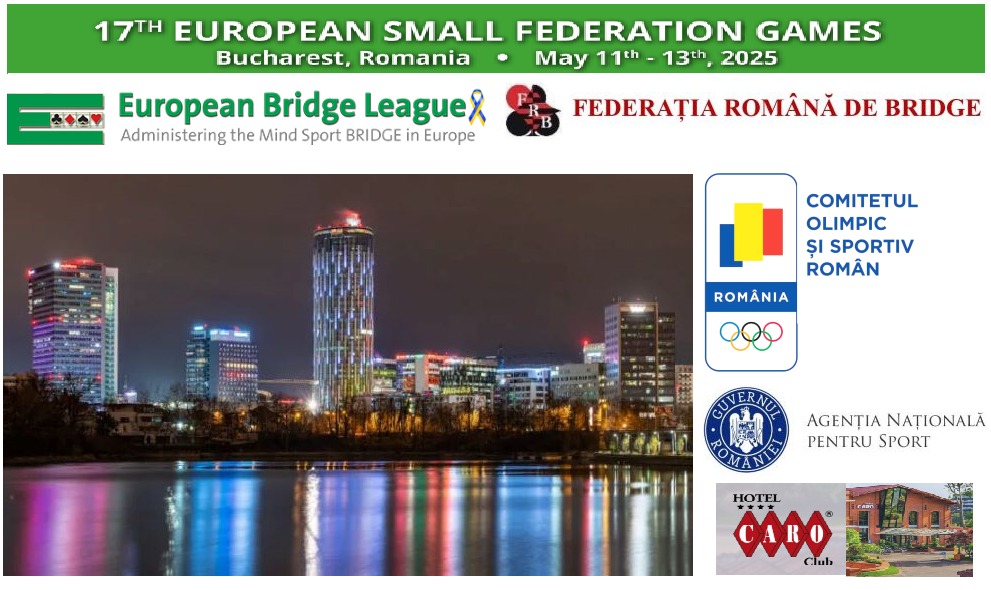 Sub egida Ligii Europene de Bridge (EBL) și a Federației Române de Bridge (FRB), cu sprijinul Comitetului Olimpic și Sportiv Român (COSR) si avizul Agenției Nationale pentru Sport, în parteneriat cu Asociația Contra Bridge Club, România va fi gazda ediției a XVII-a a Jocurilor European Small Federation Games.