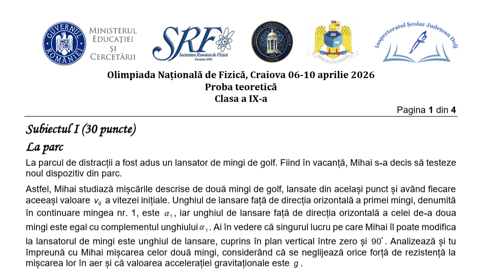 Olimpiada Națională de Fizică 2026 confirmă standardele ridicate ale competiției, prin subiecte complexe și relevante pentru realitatea științifică actuală. Elevii participanți au fost puși în fața unor provocări care testează atât cunoștințele, cât și creativitatea și capacitatea de analiză.