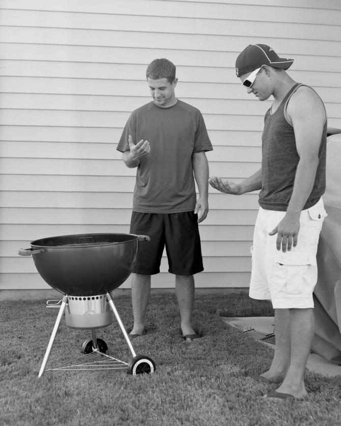 Fotograful american Eric Pickersgill a creat „Removed” (eng. eliminate), o serie de fotografii care să ne amintească cât de ciudată este această poziție, de fapt. În fiecare portret, dispozitivele electronice au fost „editate” (eliminate înainte de realizarea fotografiei, de la persoanele care le foloseau), astfel încât oamenii să se uite la mâinile lor sau spațiul gol dintre mâini, ignorând adesea împrejurimile frumoase sau oportunitățile de interacțiune umană. Rezultatele sunt un pic triste și înfricoșătoare – și, probabil, un memento pentru a ne pune telefoanele la deoparte.