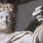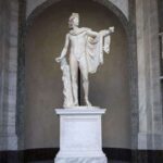 Considerată chintesenţa frumuseţii şi a artei, această statuie din marmură, înaltă de 2,24 metri, îl reprezintă pe zeul Apollo în mers, cu braţul stâng întins după ce a tras o săgeată din arc.