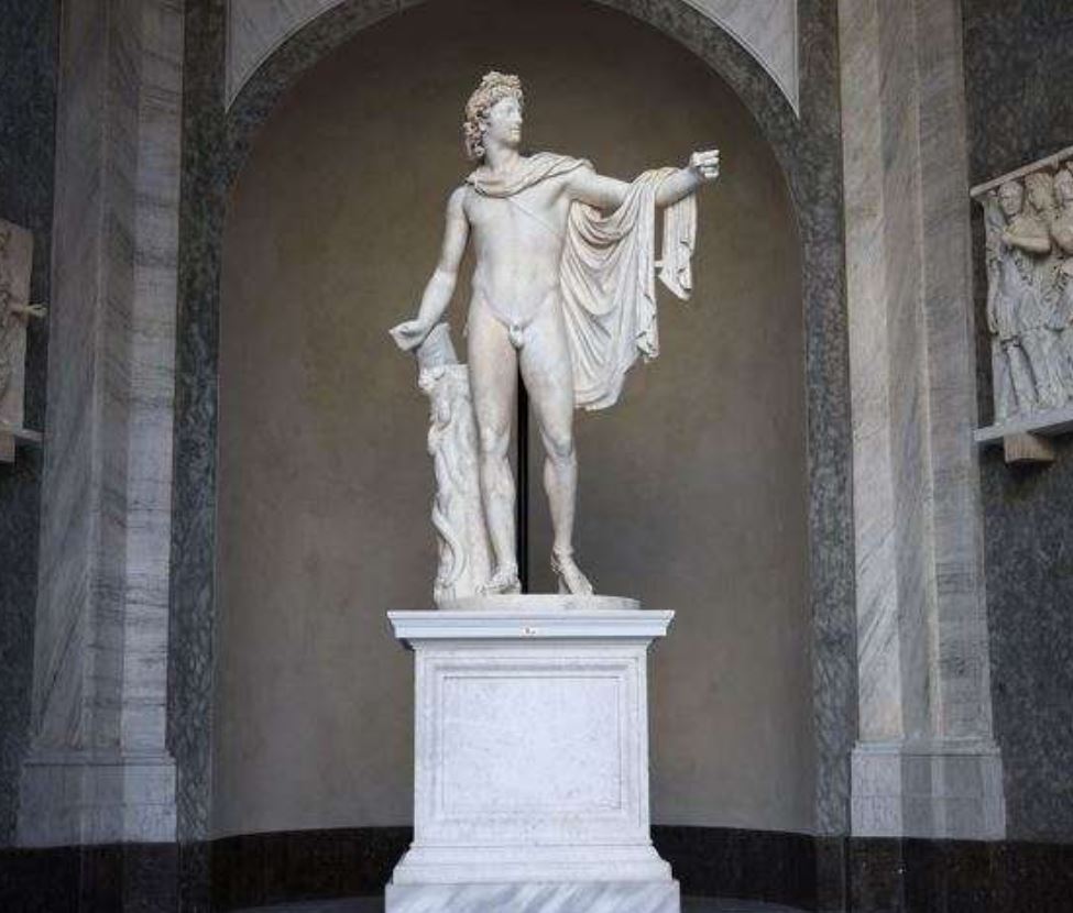 Considerată chintesenţa frumuseţii şi a artei, această statuie din marmură, înaltă de 2,24 metri, îl reprezintă pe zeul Apollo în mers, cu braţul stâng întins după ce a tras o săgeată din arc.